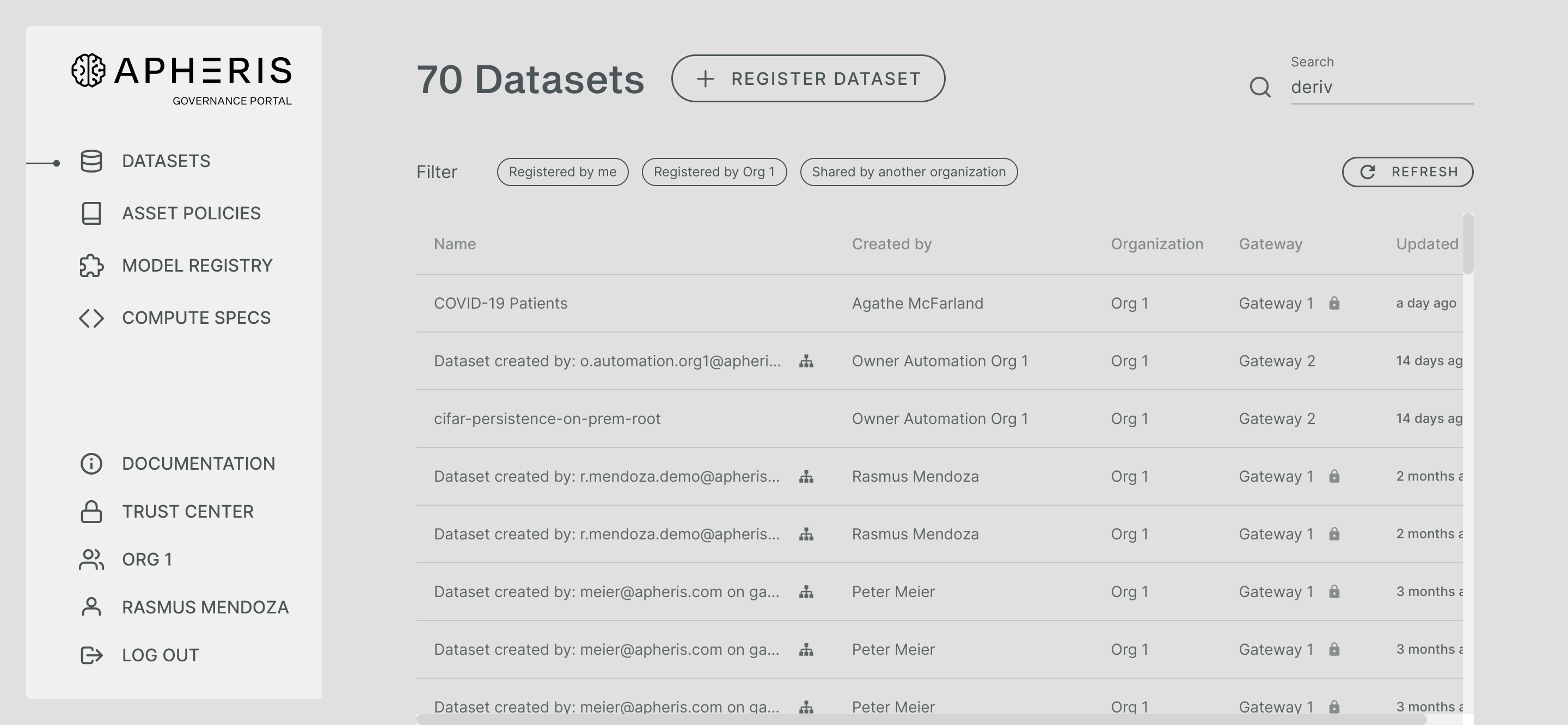 Apheris empowers data scientists to create Derived Datasets, facilitating the reuse of pre-processed information. This optional feature requires Data Persistence to be enabled on the Gateway.
