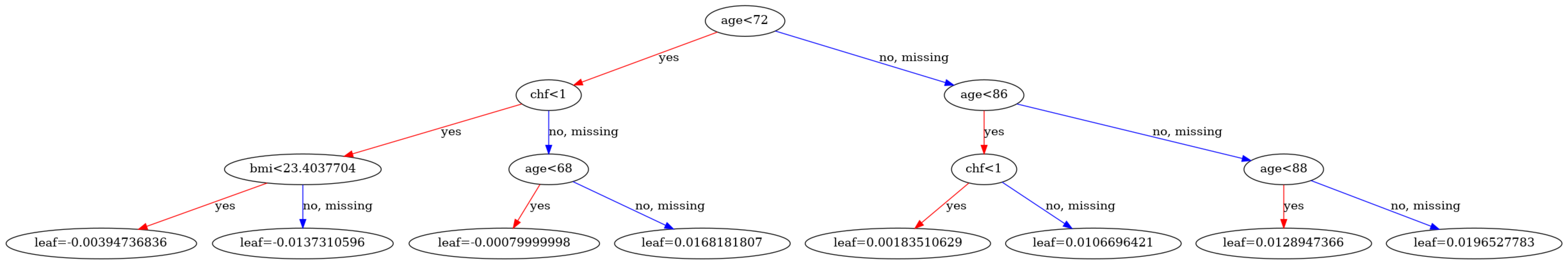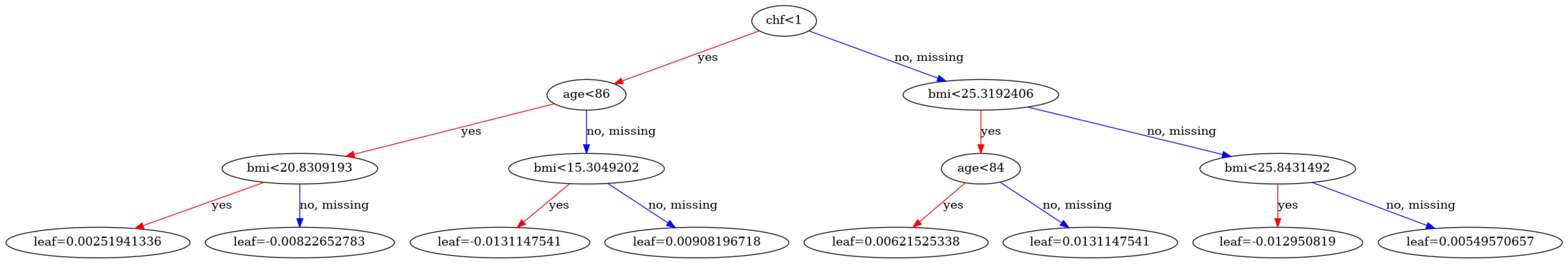 Comparing the first trees of the model trained on filtered data, you can see that the age decision bounds reflect the new distribution.