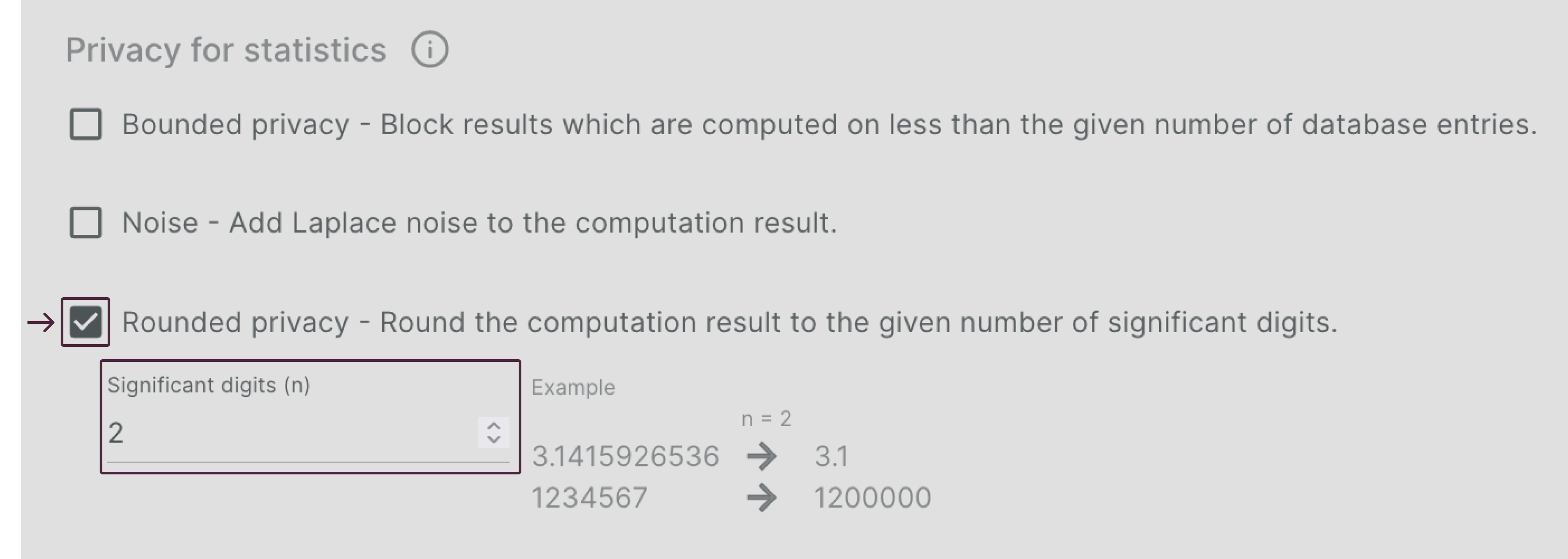 To configure Rounded Privacy, the number of βsignificant digitsβ to use has to be defined.