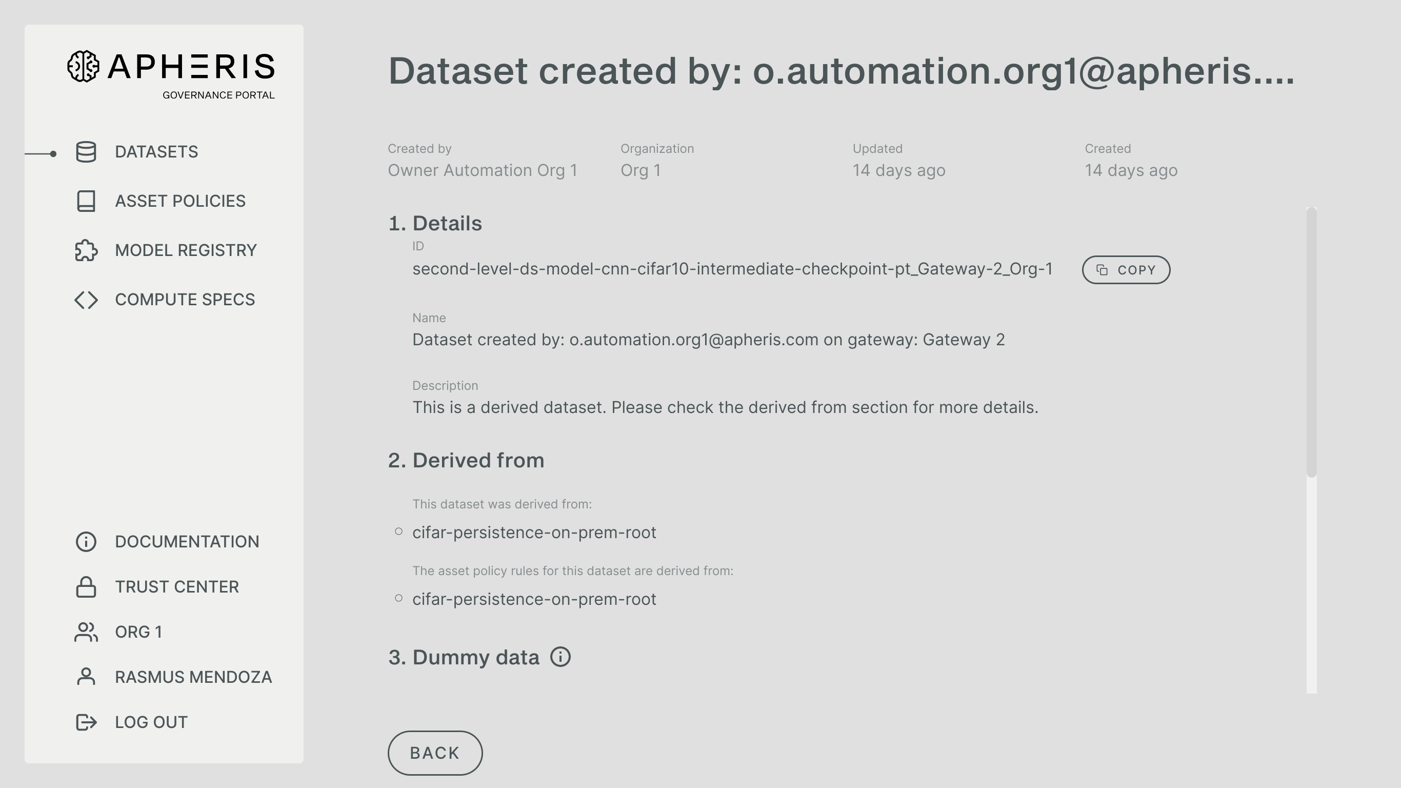 Apheris empowers data scientists to create Derived Datasets, facilitating the reuse of pre-processed information. This optional feature requires Data Persistence to be enabled on the Gateway.